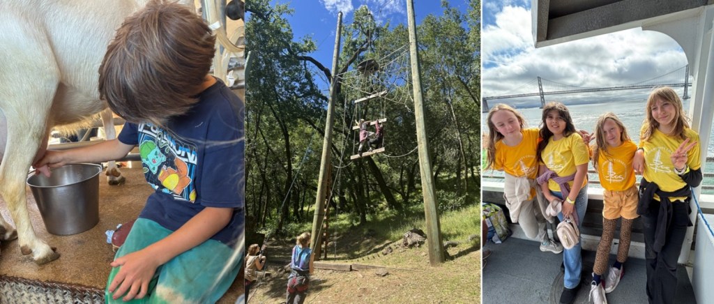 Younger students in TK–5th grade began their trip midweek. TK–3rd grade classes visited Redwood Hill Farm, where they toured the creamery and learned about sustainable goat farming. Students brought cheese from the farm back to share at dinner later that evening. Meanwhile, 4th–5th grade students spent the afternoon at Challenge Sonoma, participating in a ropes course designed to build confidence, teamwork, and resilience.